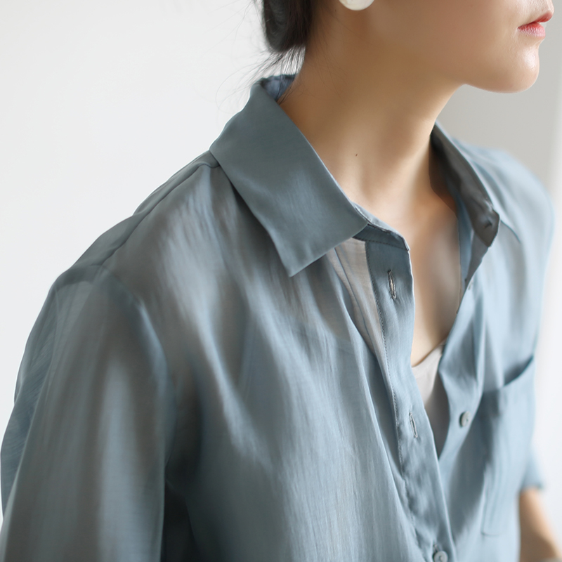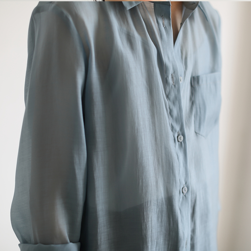 LIMONN temperament blue commuter thin wear sweater shirt women summer design niche sunscreen coat shirt Xia