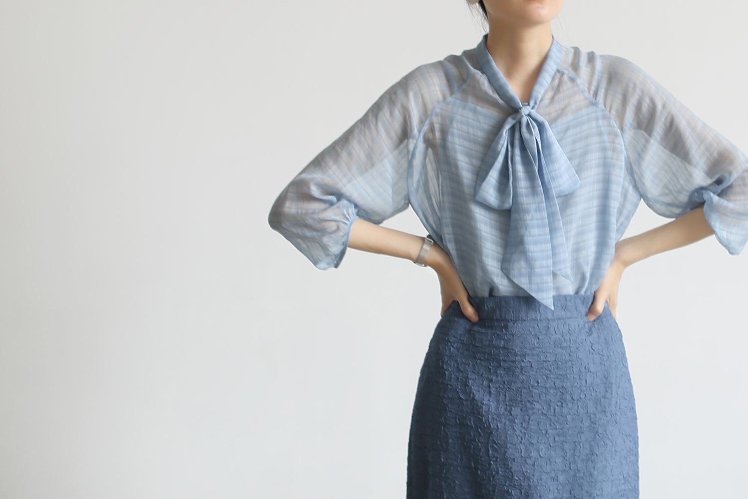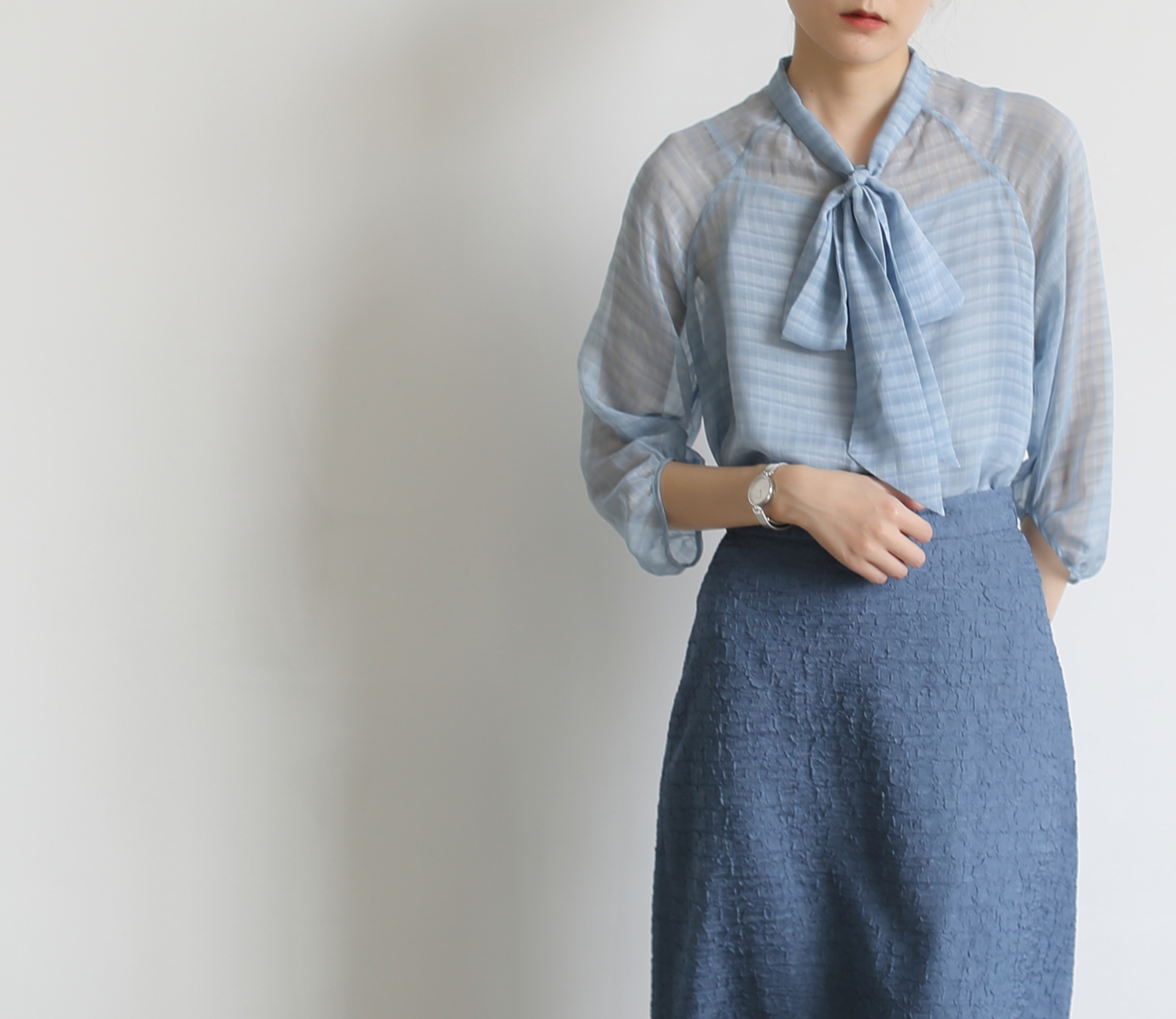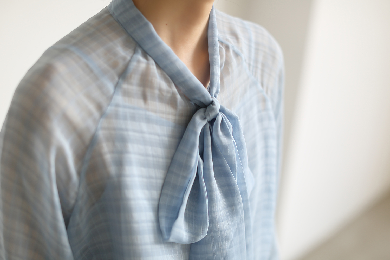 LIMONN small plaid perspective lace-up 7-point sleeve shirt literary fresh with suspenders spring and summer light top chic