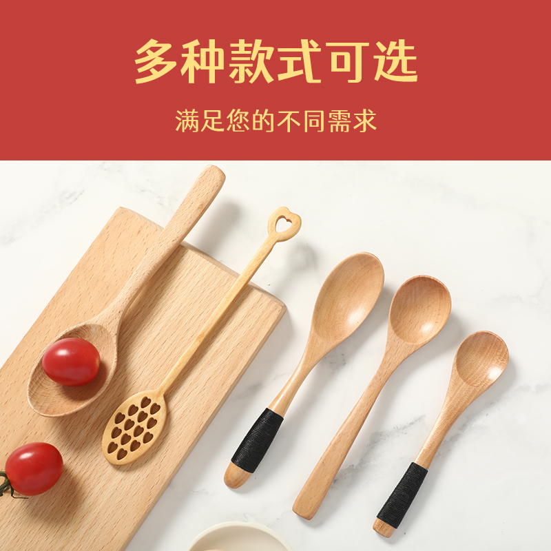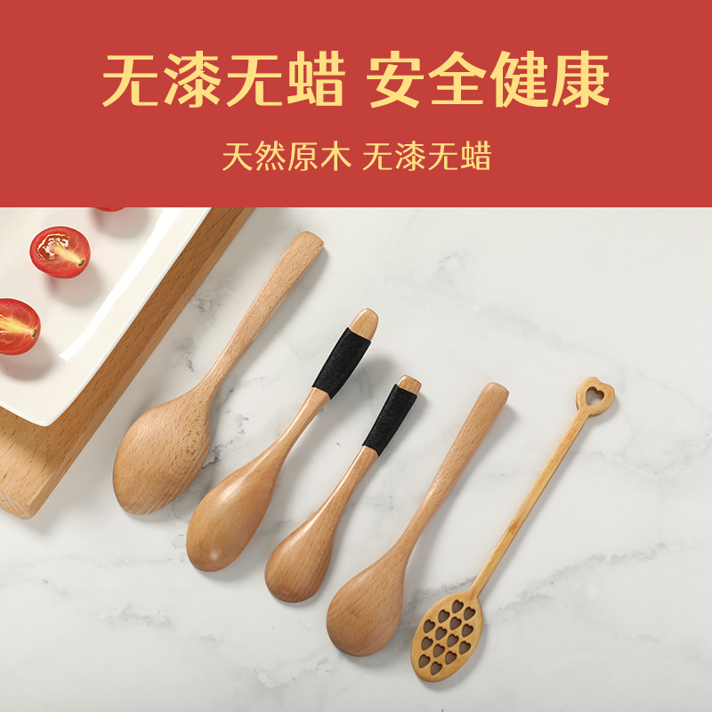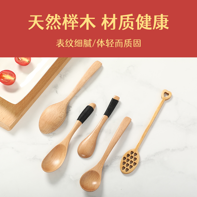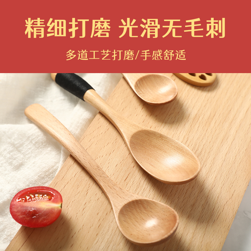 Rich and expensive home solid wood spoon long handle tablespoon small wooden spoon cutlery wood to eat tablespoon seasoning household rice spoon