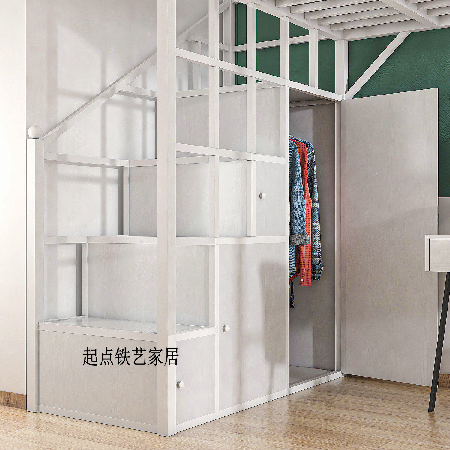 Iron art bed modern minimalist loft elevated bed multi-functional iron bed empty single upper layer adult children duplex upper bunk
