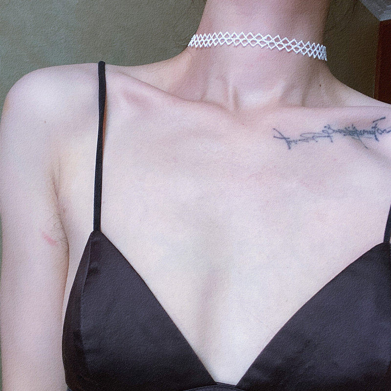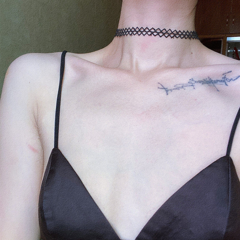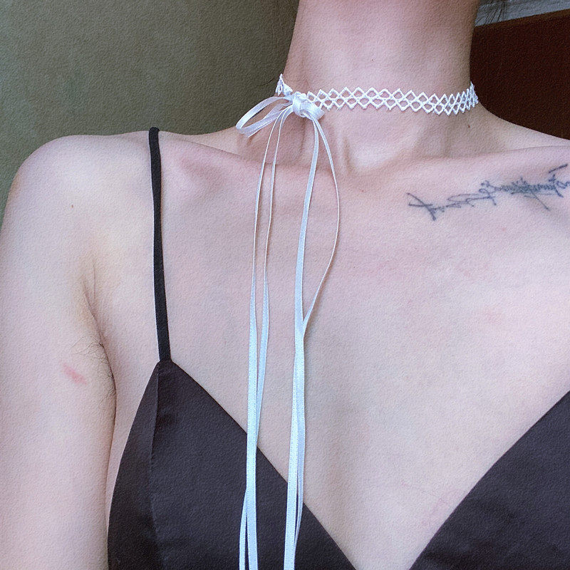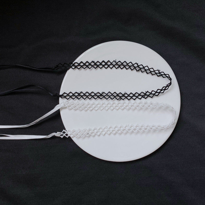 Lou Haha] black lace choker strap without buckle bow basic necklace clavicle chain long neck strap