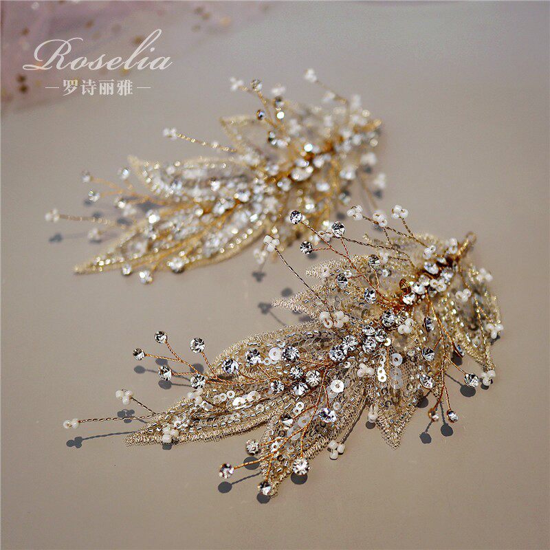 European and American children performing headwear with light champagne lace side clip little princess girl ballet dancer walk show hair accessories