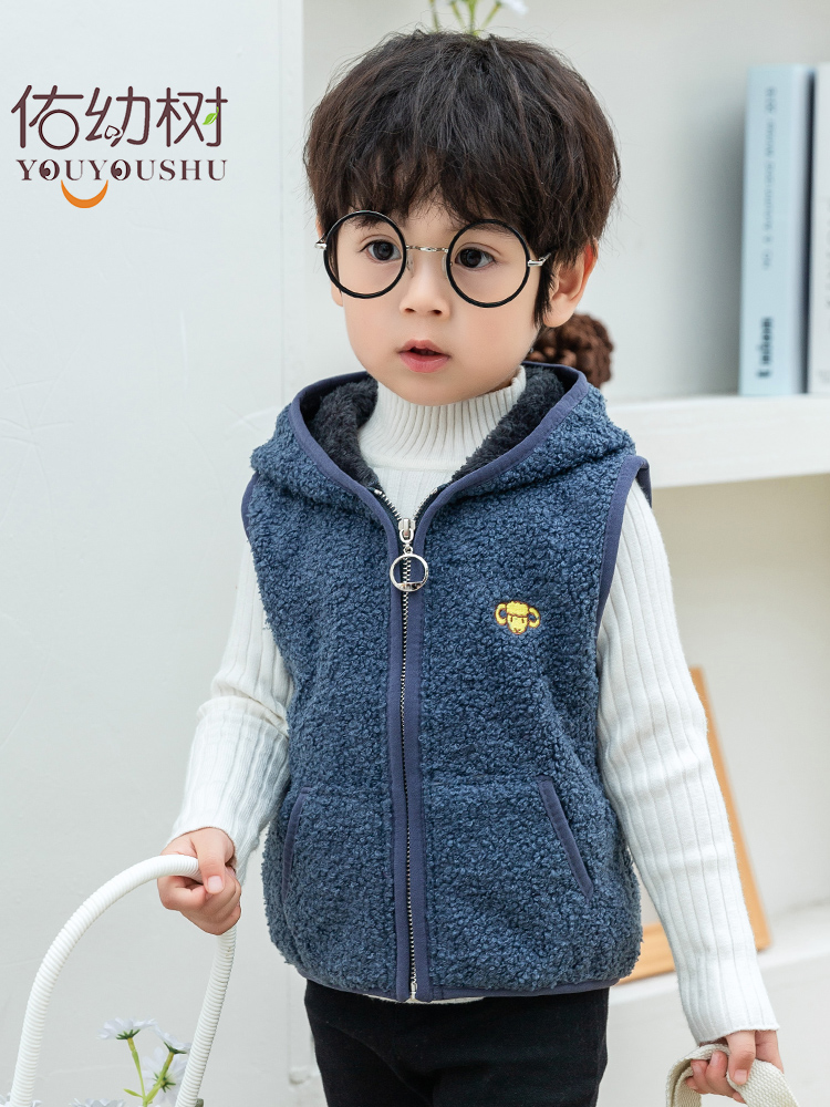Children's vest autumn clothing boy plus fleece hooded vest autumn and winter baby wears foreign style Korean version vest vest