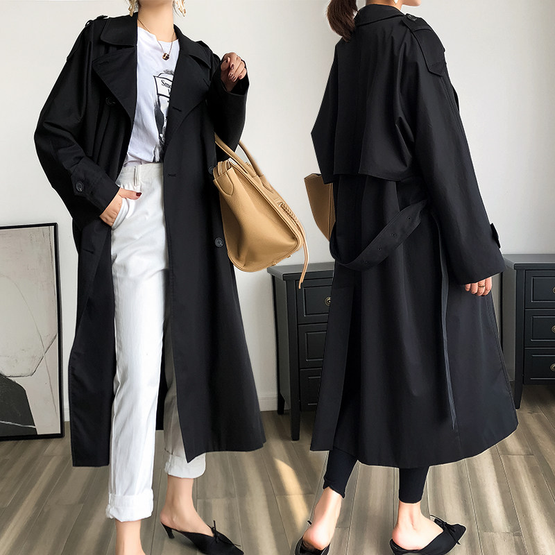 MRMW2020 autumn new temperament double-row buckle cotton medium long version of the wind coat female chic lacing port wind over knee jacket