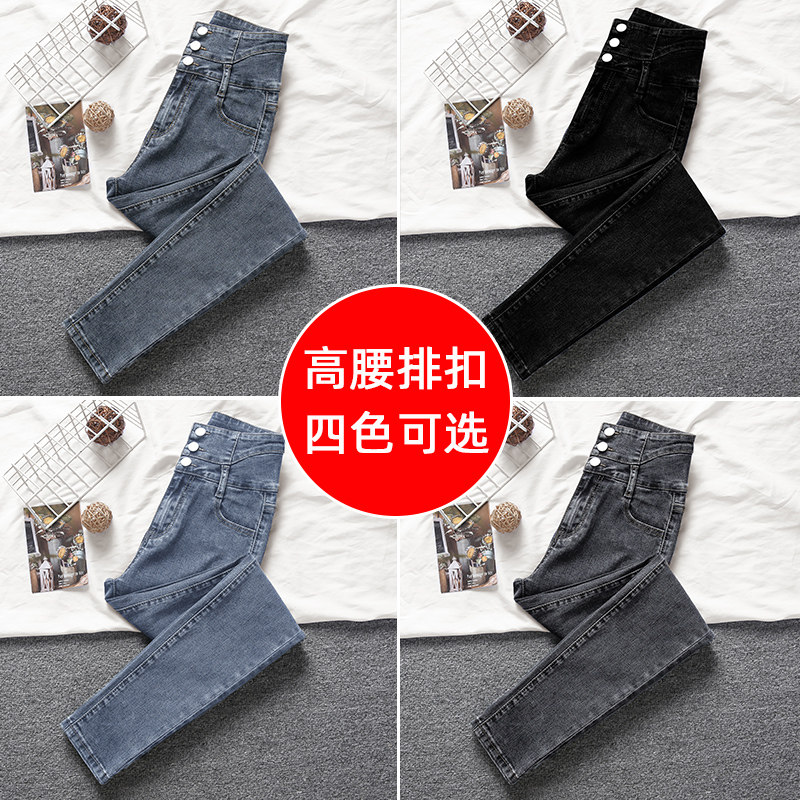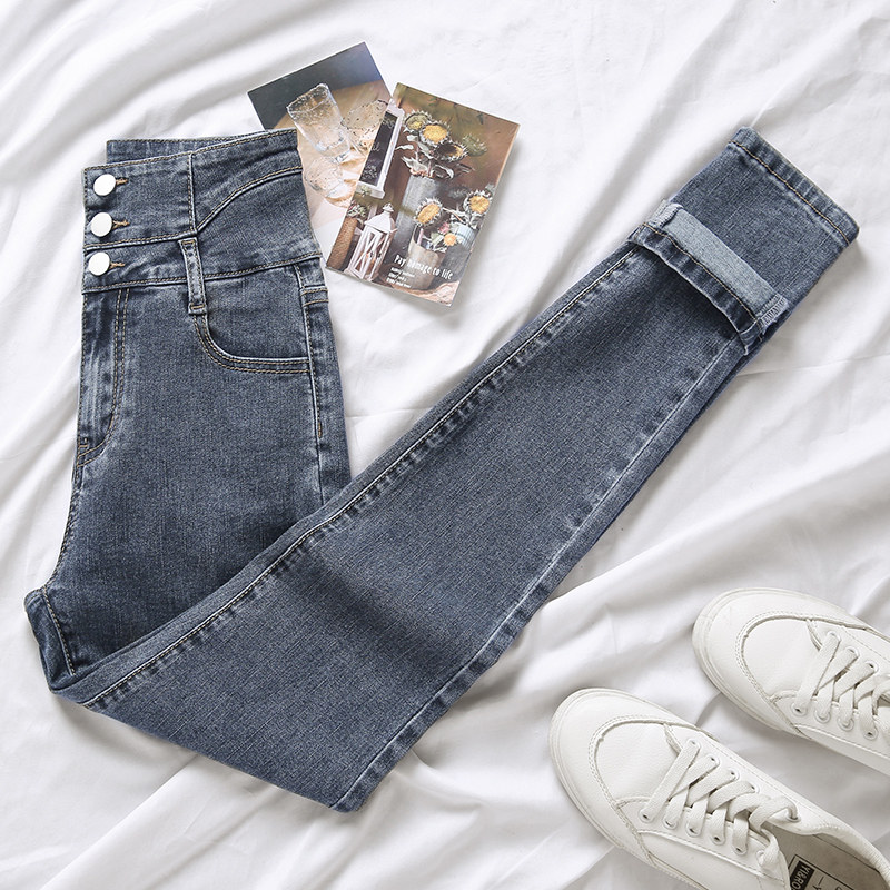 High waist jeans women's autumn and winter 2022 new style slimming pencil tight plus velvet women's cigarette pipe pants winter