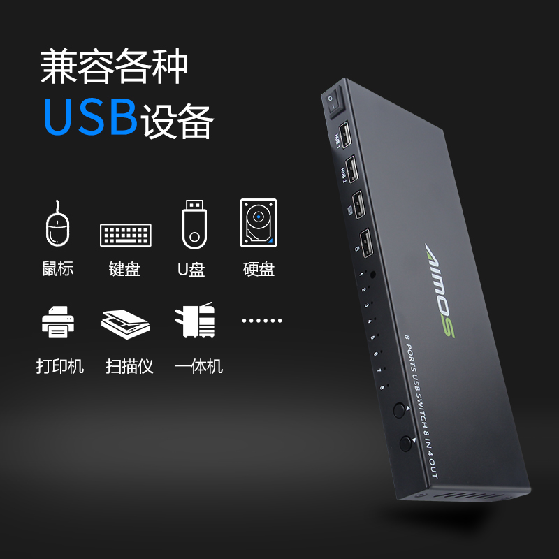 Ai Mai TV computer USB switcher KVM8 Port multiple devices share a set of mouse keyboard printer U disk eight in four out free network exchange one drag four extension cord remote control
