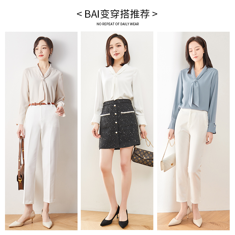 Yalida French streamer shirt women's design sense niche top 2022 spring and autumn new white chiffon shirt shirt