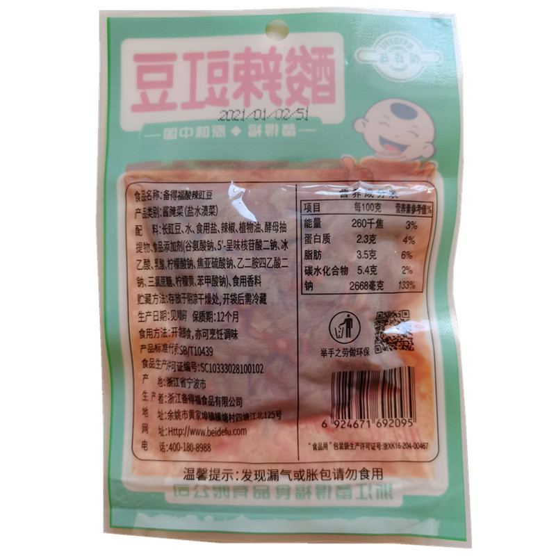 Beidefu hot and sour cowpea 50g breakfast side dish next meal delicious and slightly spicy sour taste sour beans