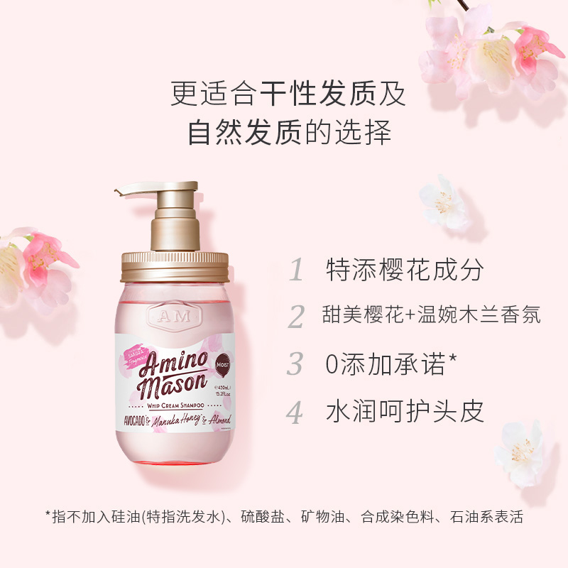 Japan imports Aminomason cherry blossom nourishing moisturizing amino acid shampoo 450ml shampoo 450ml shampoo