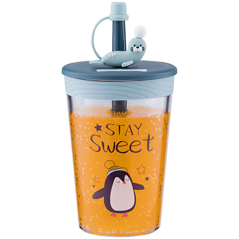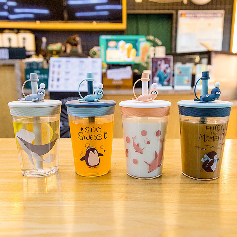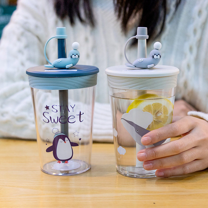 TRITAN straw cup dolphin summer water cup student fresh straw drinking cup large-capacity juice milk cup