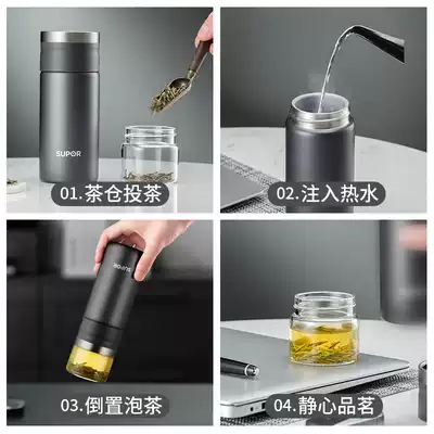 Supor thermos cup women's and men's tea water separation tea filter cup high-end portable large-capacity stainless steel water cup