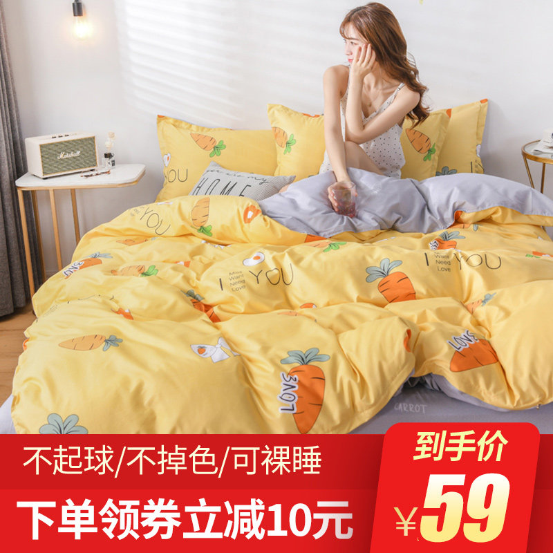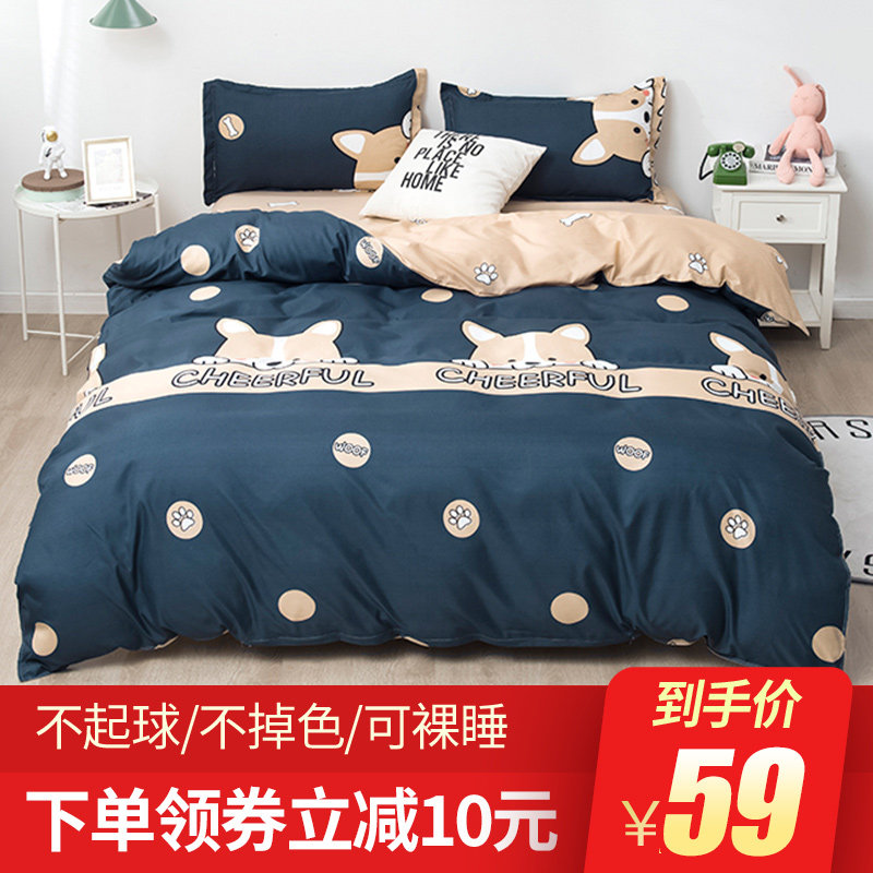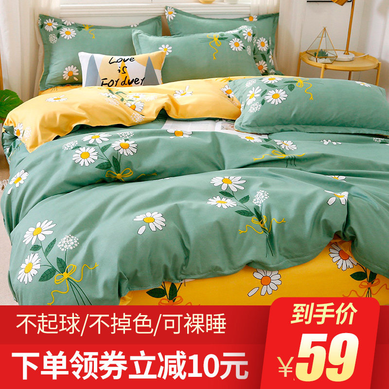 Net red with four sets of all-cotton pure cotton beds Bedding Dormitory summer Students Bedsheets quilted quilt Three sets 4