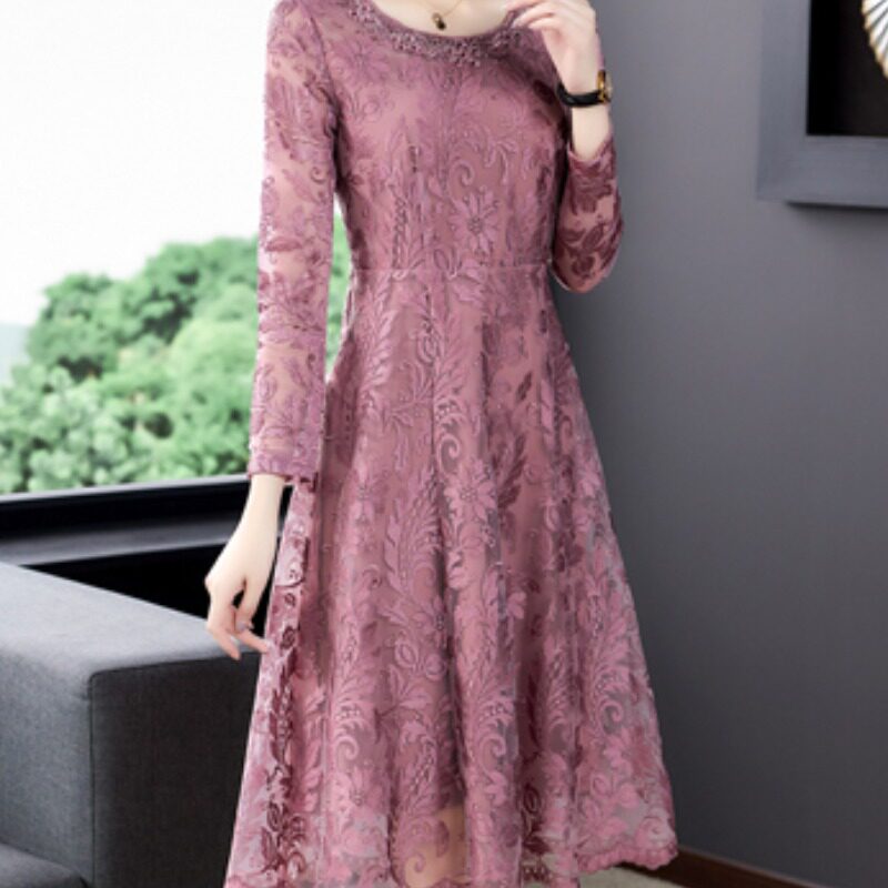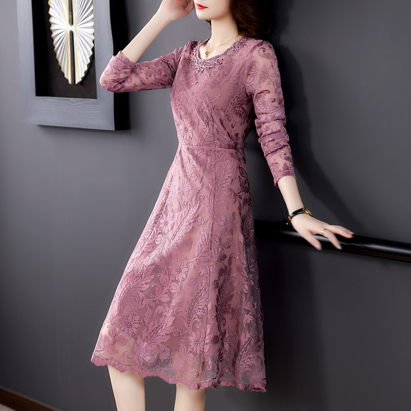 The new embroidered mom's meat - shade dress in spring 2023 - dress long sleeve embroidery fake two skirts