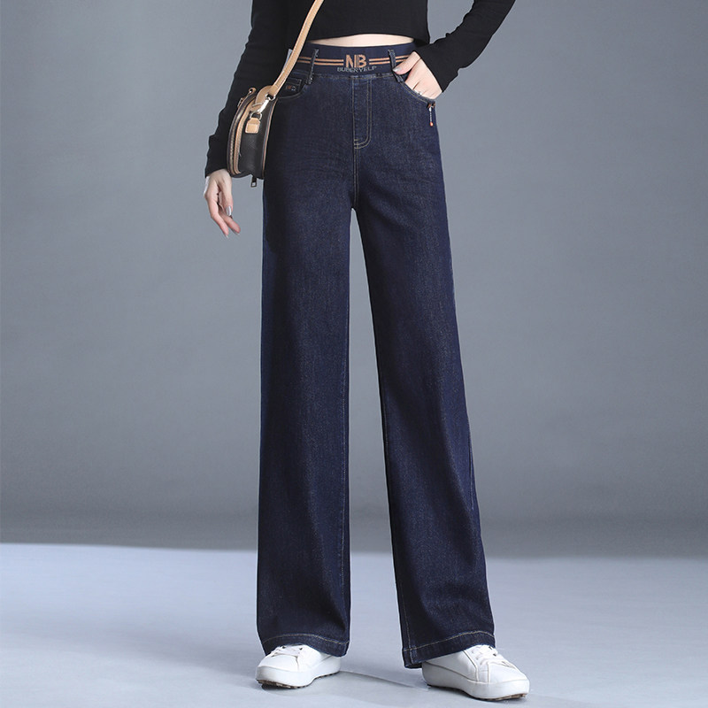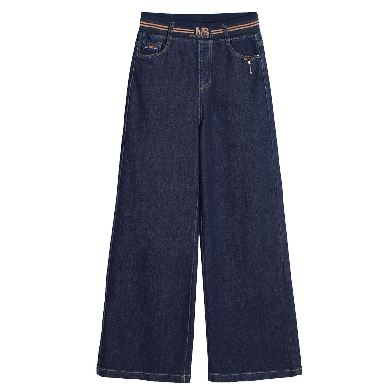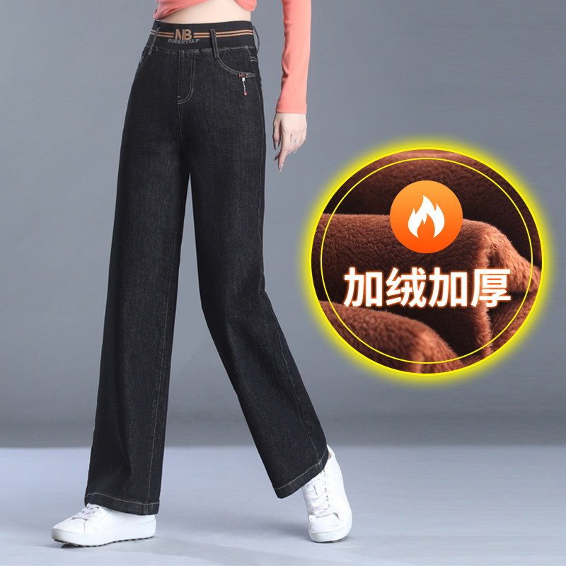 High waist velvet wide leg jeans women's autumn and winter thickened fat mm large size pants elastic waist mom straight pants spring