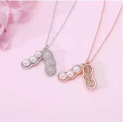Sterling Silver Step High Rise Peanuts Pearl Sliced Female Korean version of niche design temperament sweater chain flash diamond choker