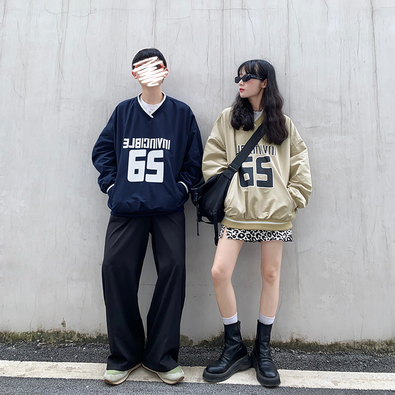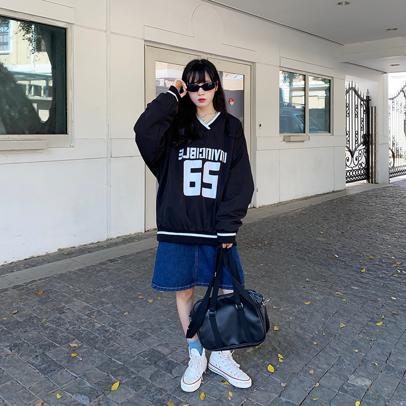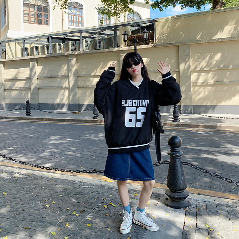 Flower Tian Window Letter printed Fried Street Ward Covest Woman New Han Edition Han Language V-collar Landscape Top
