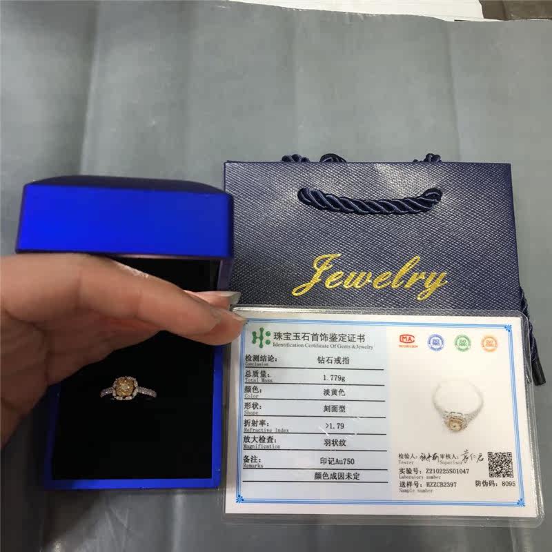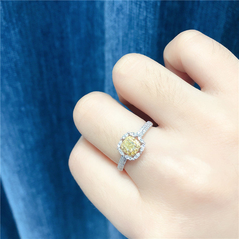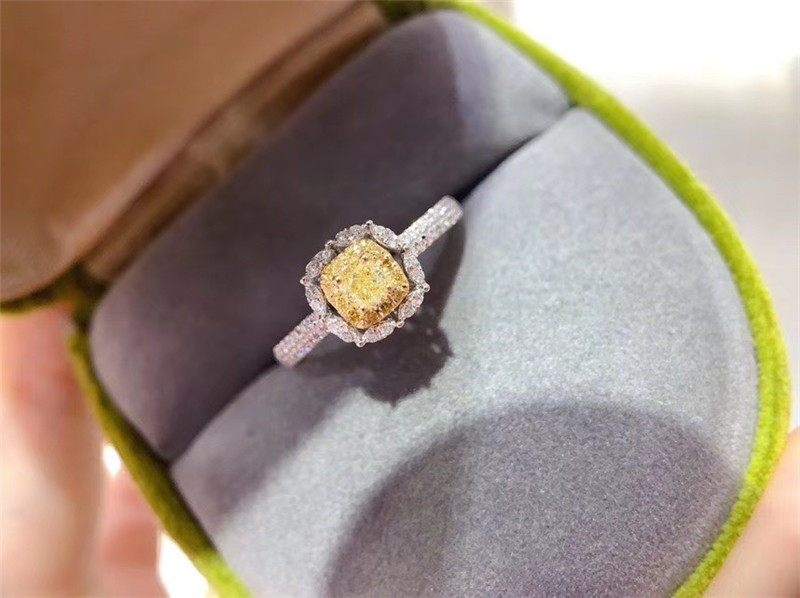 Exquisite design main drill 20 points yellow diamond sub drill 35 points total 55 points diamond 18K white gold ring diamond ring female ring