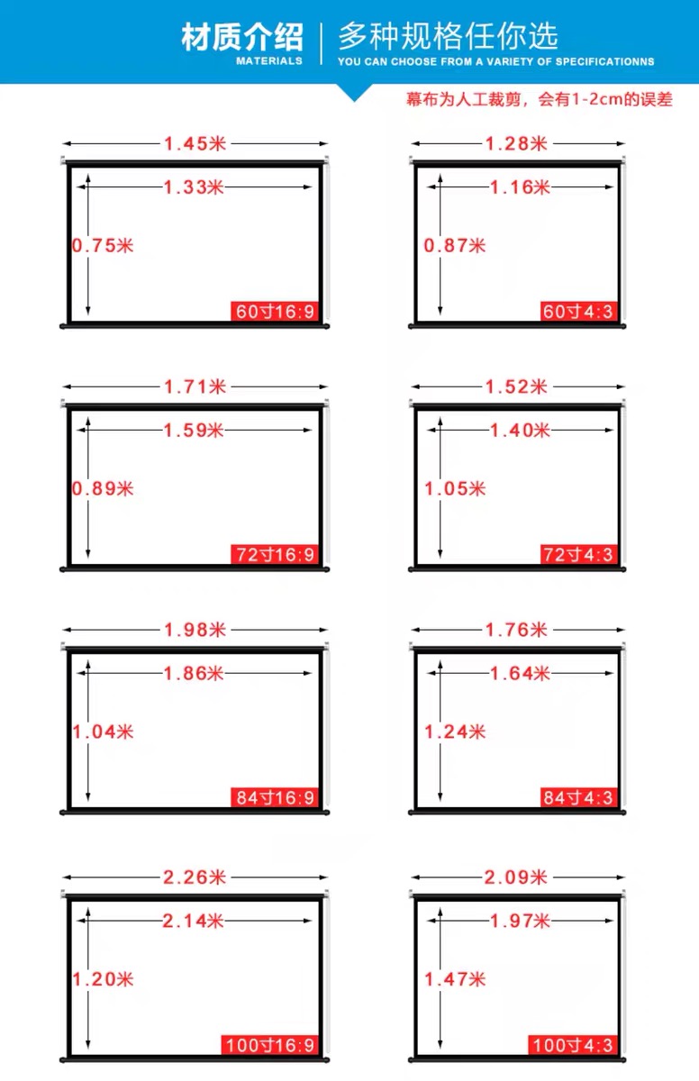 60 60 inch 16 9 hand roll curtain 72 inch 16 inch 9 9 hand roll curtain 84 inch 16 9 hand roll curtain 92 inch 16 9 pull roll curtain 100 inch 16 9 hand roller blinds