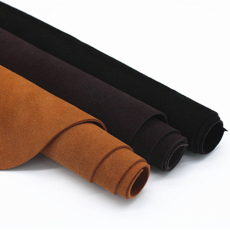 Cowhide leather material Leather turned fur double-sided velvet Black leather material Brown suede DIY handmade leather material
