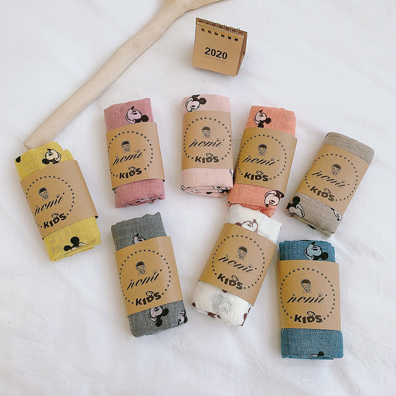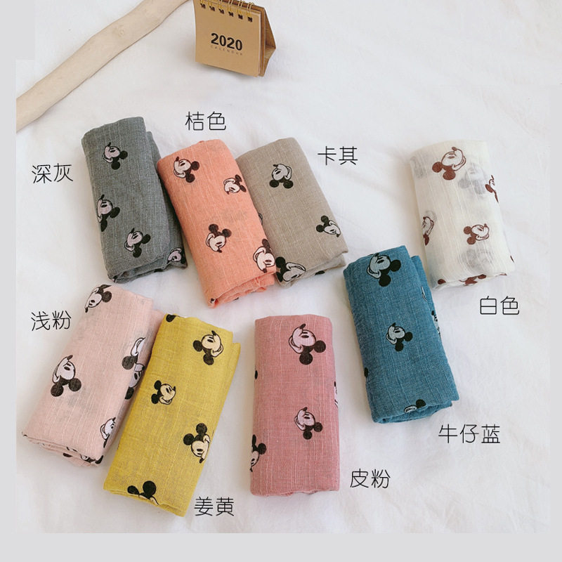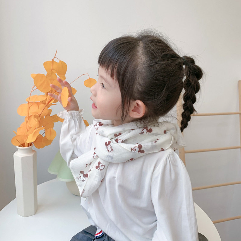 Korean version of the new cute cartoon children's scarf spring and autumn all-match decorative baby scarf cotton and linen print women's silk scarf