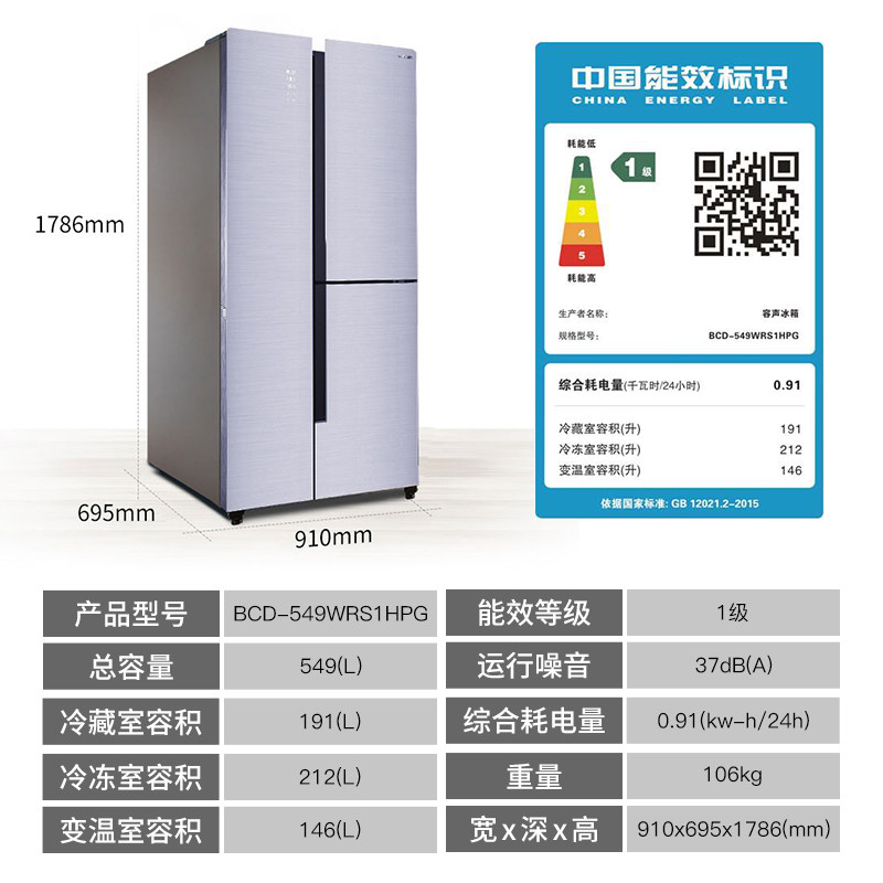 Ronshen Sound BCD-549WRS1HPG opens three door refrigerator conversion T font smart moon light silver