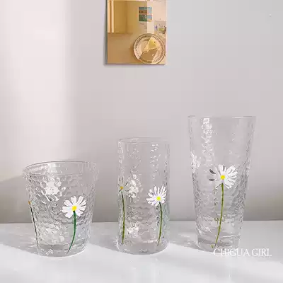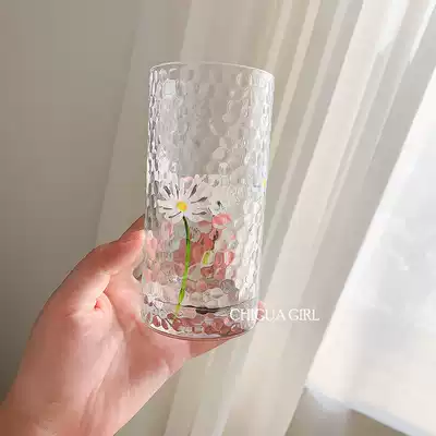 Japanese ins hand-painted Daisy hammer eye glass fresh little Daisy transparent heat-resistant glass water Cup