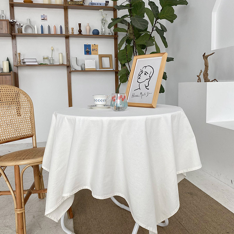 ins photo tablecloth Nordic white cotton and linen tablecloth fabric rectangular coffee table retro small round table tablecloth