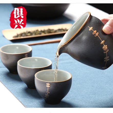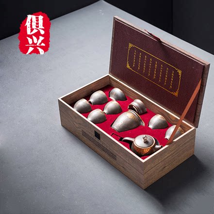 High-end Fine Iron Rust Glaze Tea Set Group Retro Home Office Tea Drinking Tea Drinking Cup Teapot Fine Gift Box