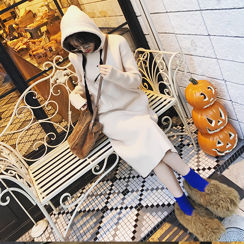 Dress girl autumn and winter dress wears a wearing wear sun sleeve with a wearing knitting hat sweater
