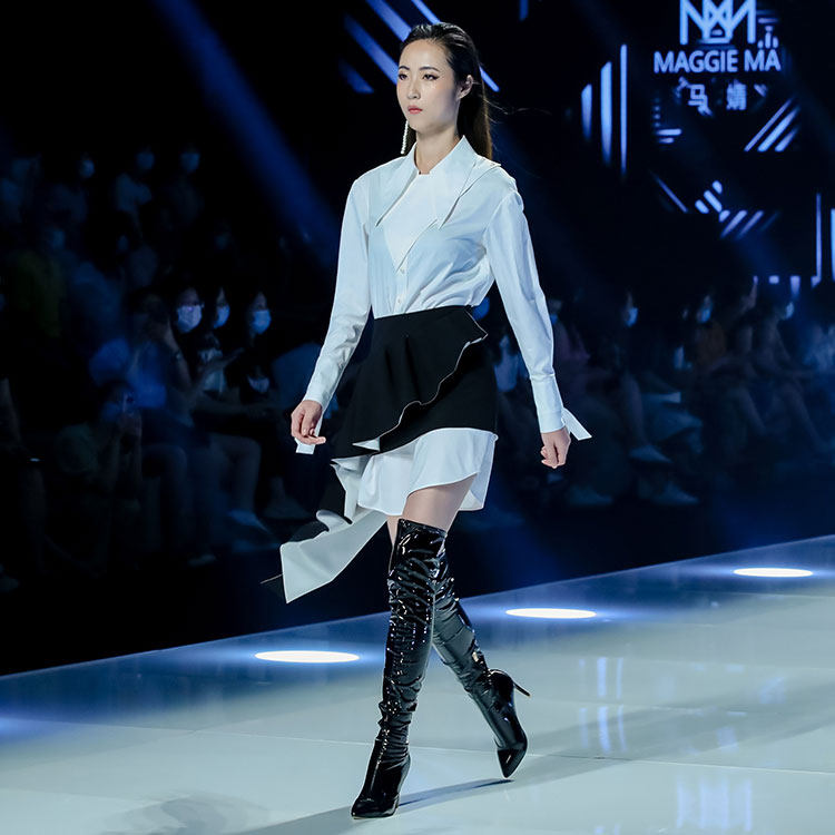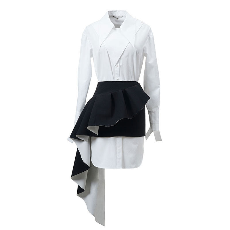 MAGGIE MA Ma Qian original walking show white shirt style foreign dress waist seal black half skirt suit 570D566B