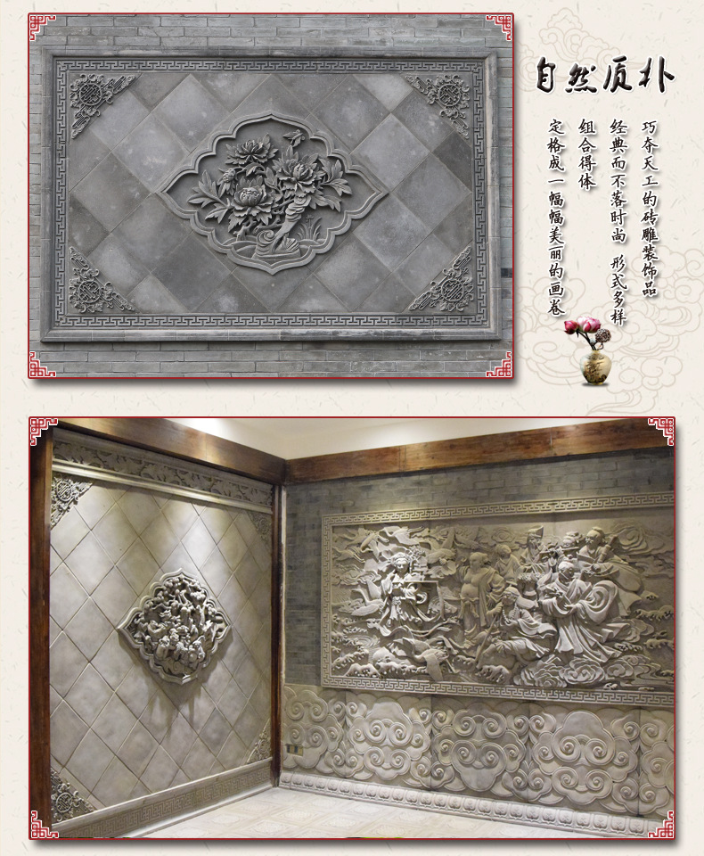 Ancient-built landscaped antique brick sculpted reliefs with Chinese style Four-in-the-courtyard house Shadow wall Brick Carving Corner Flower Spot-Taobao
