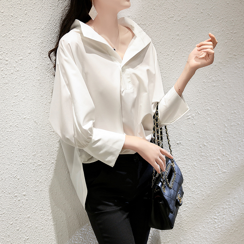 Profile design Sensation High Support Cotton V Collar White Shirt Woman 2020 Early autumn new 100 lap loose Conspiculean Professional Shirt