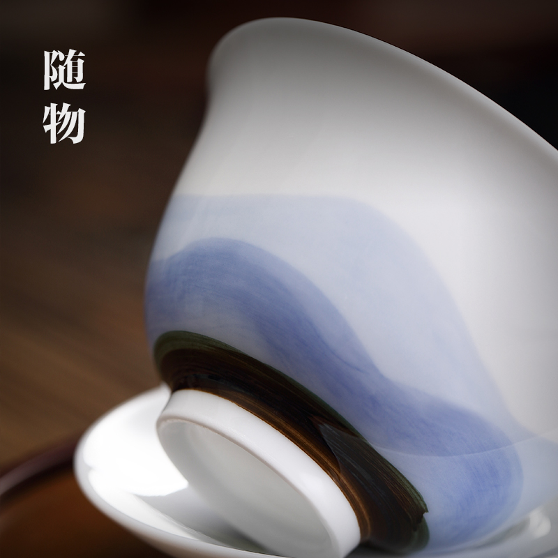 Ceramic three-talent cup package without hot hand-bubbling tea single tea bowl Jingdezhen tea set white porcelain Japanese large number