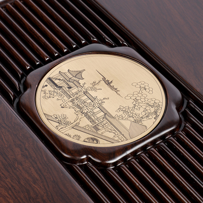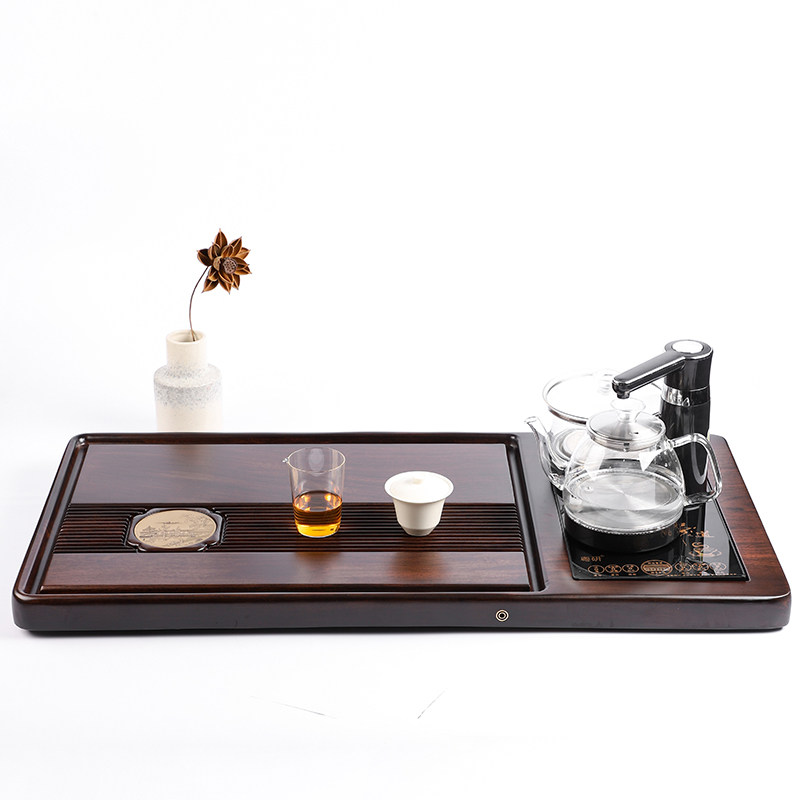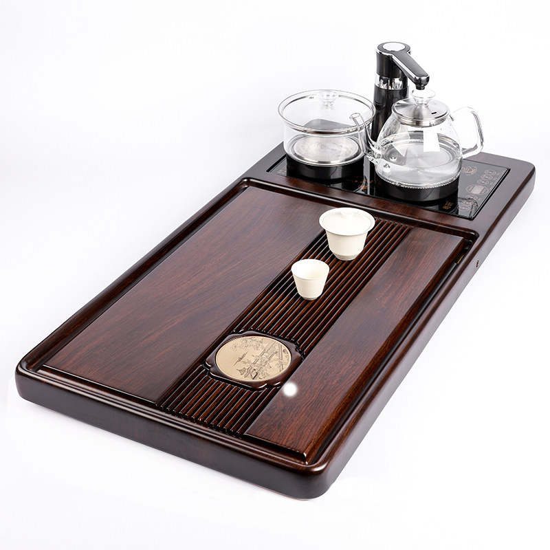 Tea Tray Home Solid Wood Charged Magnetic Furnace Integrated Whole Black Sandalwood Chinese Tea NTU Tea Haseigong Fu Tea House
