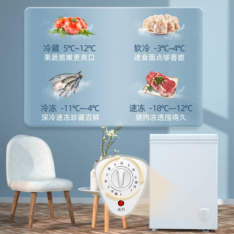 Summer New freezer Home Small refreshing freezer Horizontal Refrigerator Single use Dormitory With Energy Saving Mini-Freezer
