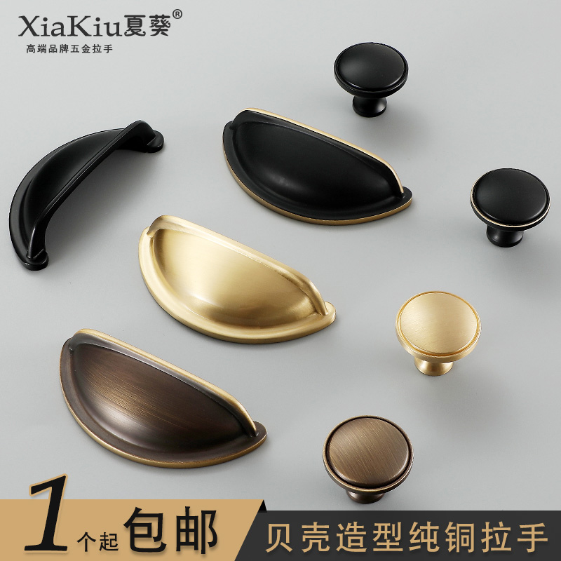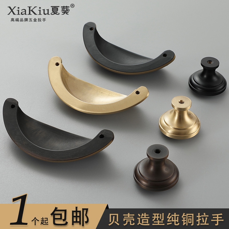 Summer sunflower light luxurious minimalist shell handle pure copper semi-circle imitation ancient American full brass New Chinese medicine cabinet drawer handle