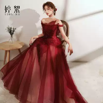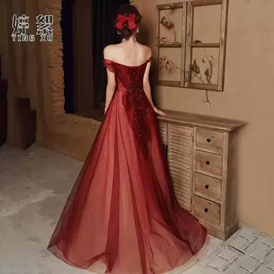 Toast service bride bride 2021 new shoulder party dress dress female banquet temperament long version engagement can be worn