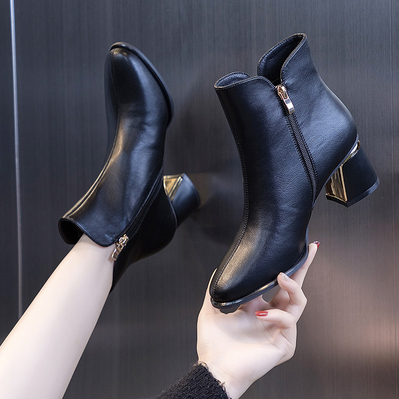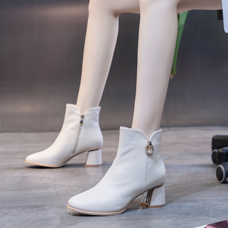 Martin boots for women 2021 winter autumn winter ankle boots all-match chunky heel heel plus velvet heels beige