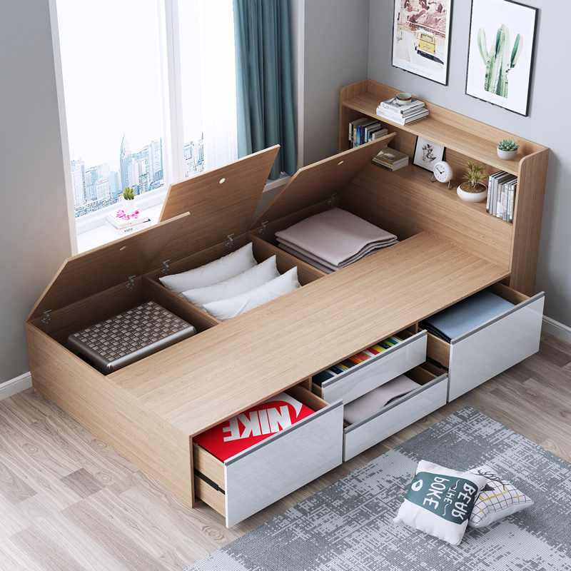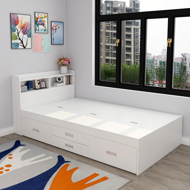 Tatami bed solid wood box bed small apartment single double board bed drawer storage box high box storage pedal rice
