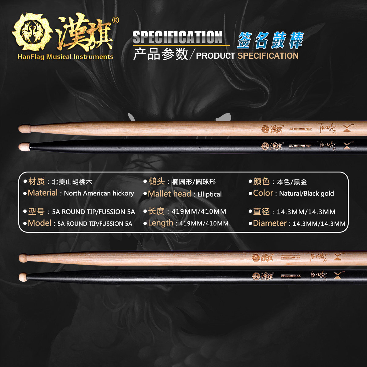 Hanqi Drum Stick Zhang Jiaoxi's signature frame sub-drum drumstick FUSION 5A 5A ROUND TIP