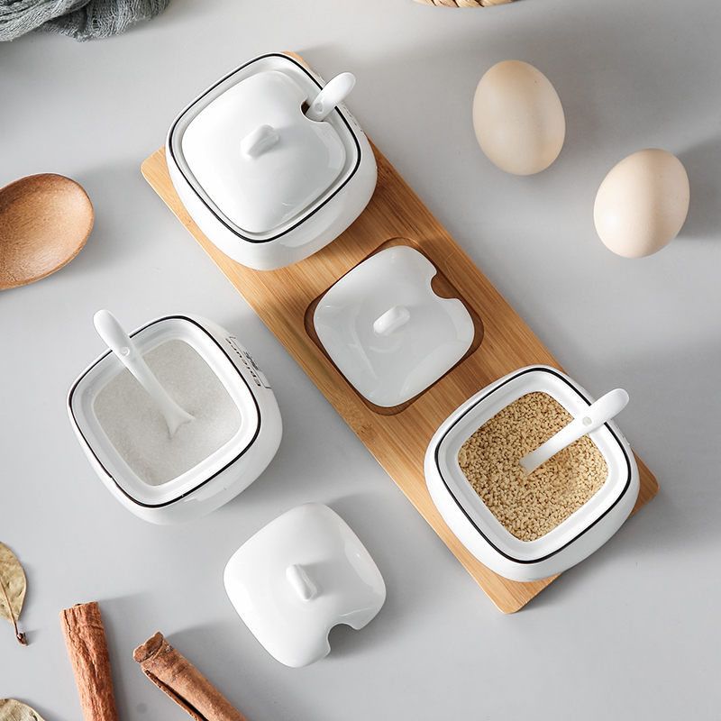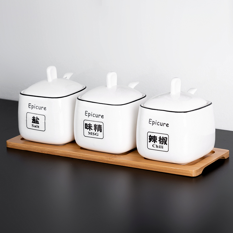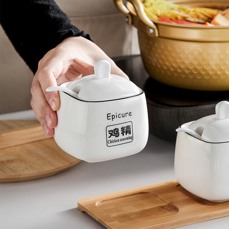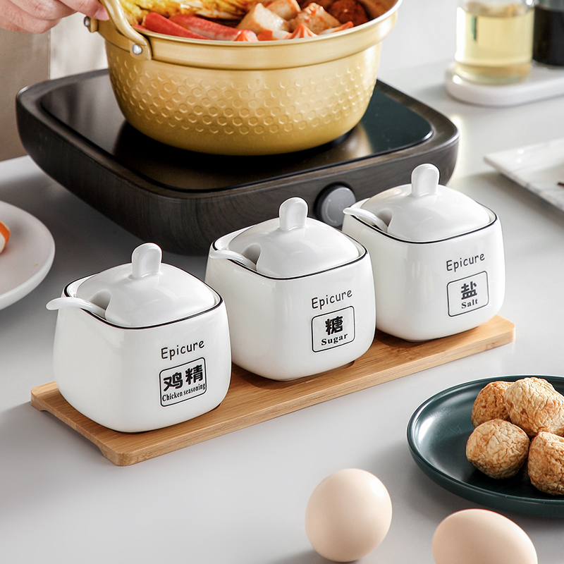 onlycook household white ceramic seasoning jar combination set Nordic seasoning box Kitchen seasoning box Salt tank
