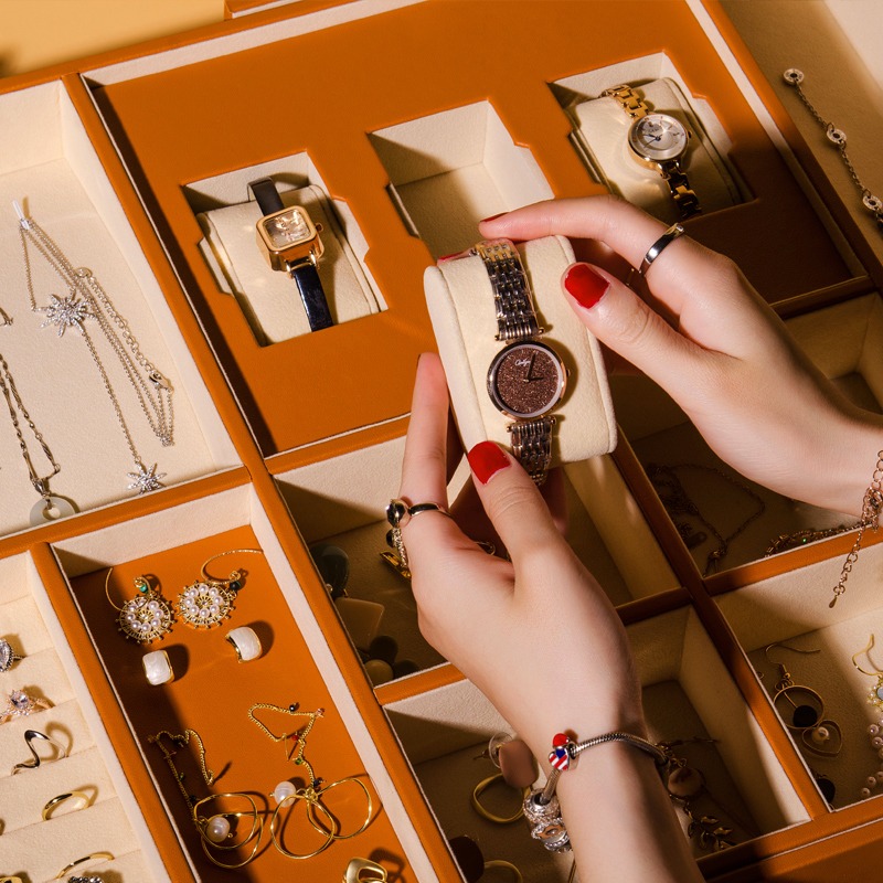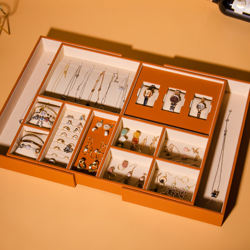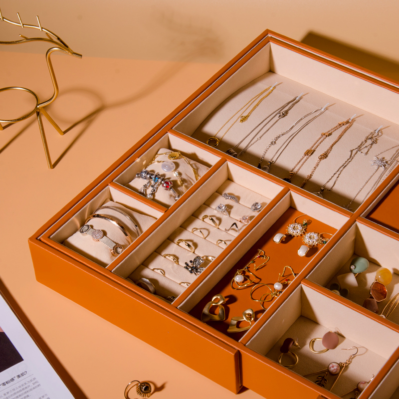 High-end luxury wardrobe leather dresser drawer type large capacity household refined necklace jewelry collection box