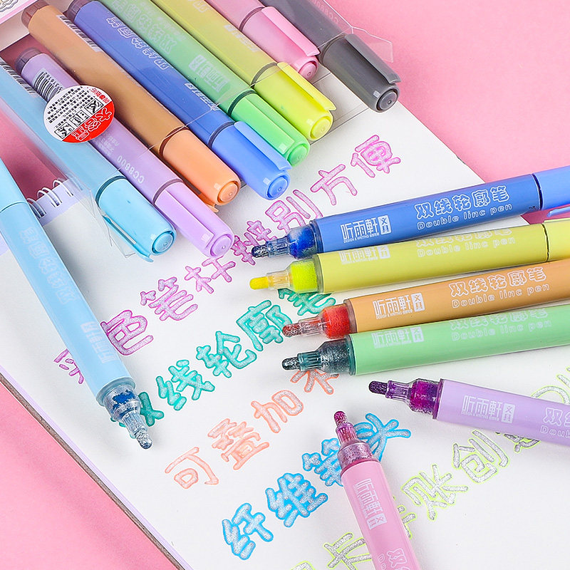 12-color double line contour pen marker dream color set fluorescent silver light shiny stroke hollow stereo stereoscopic marker pen student account diy graffiti poster greeting card flash gel water pen