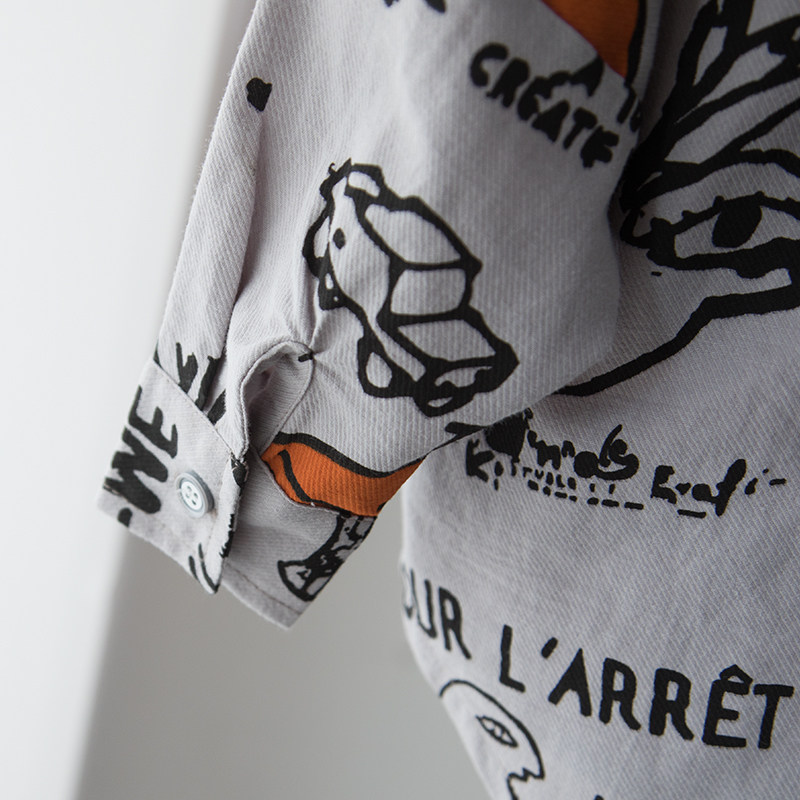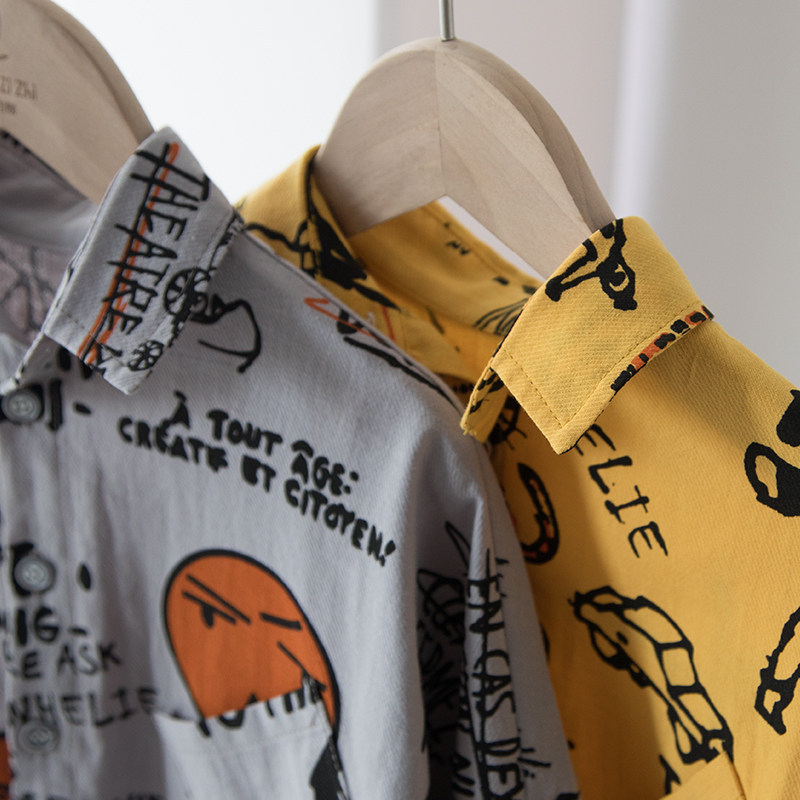 Moji homemade boy's shirt children's long-sleeved shirt pure cotton baby personality top loose western style autumn dress tide