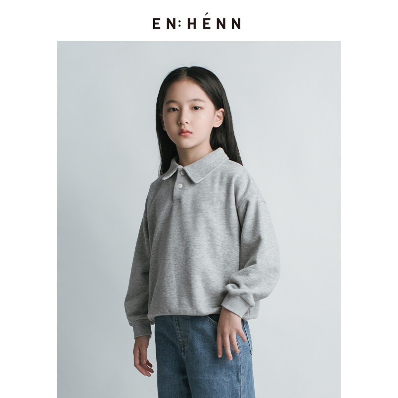 enhenn child clothing 2022 spring new boy girl's thick T-shirt baby flipped blouses foreign Korean version