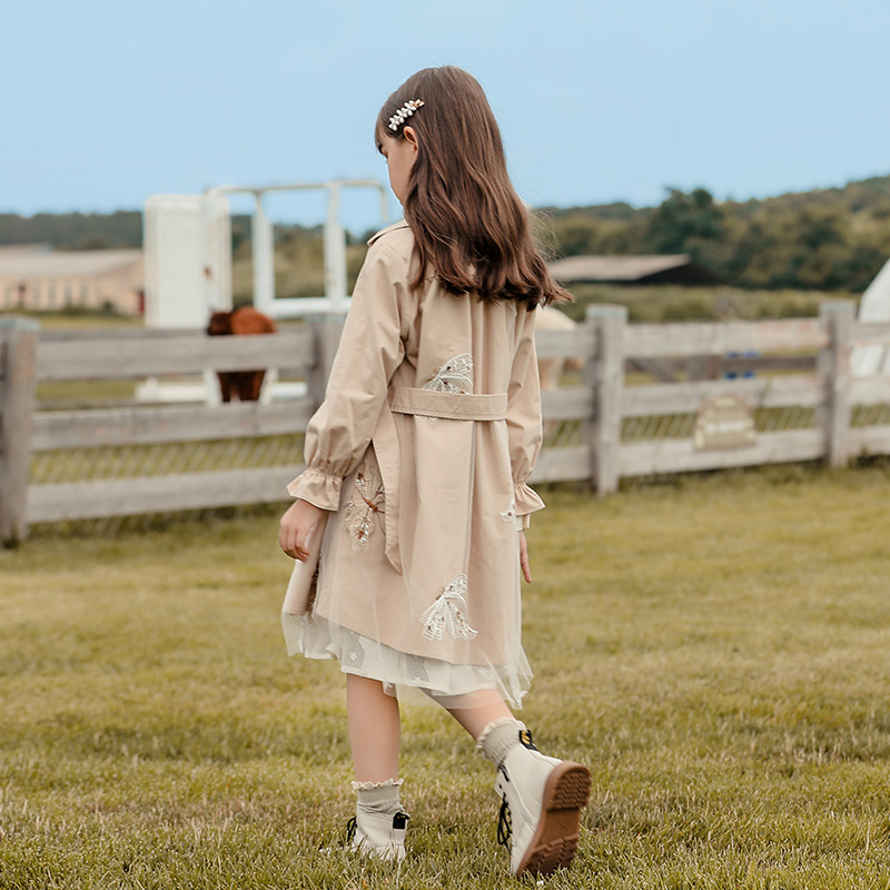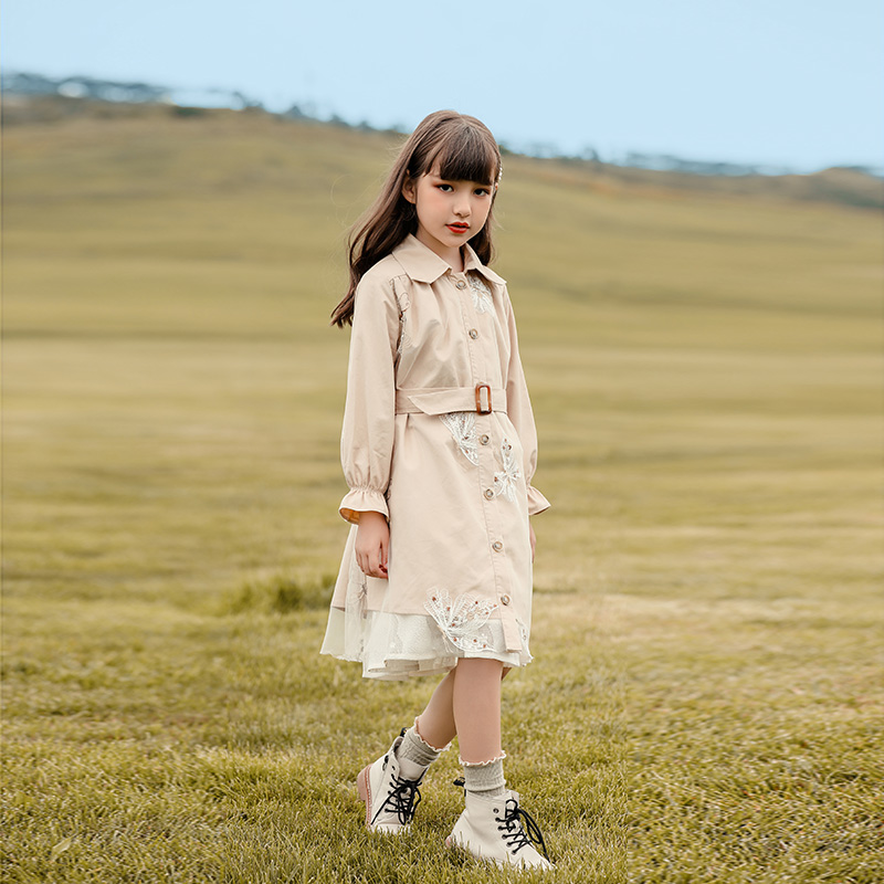 Girls Autumn Trench coat jacket 2022 new spring and autumn foreign atmosphere in the big children autumn clothes children's long spring clothes children's clothes
