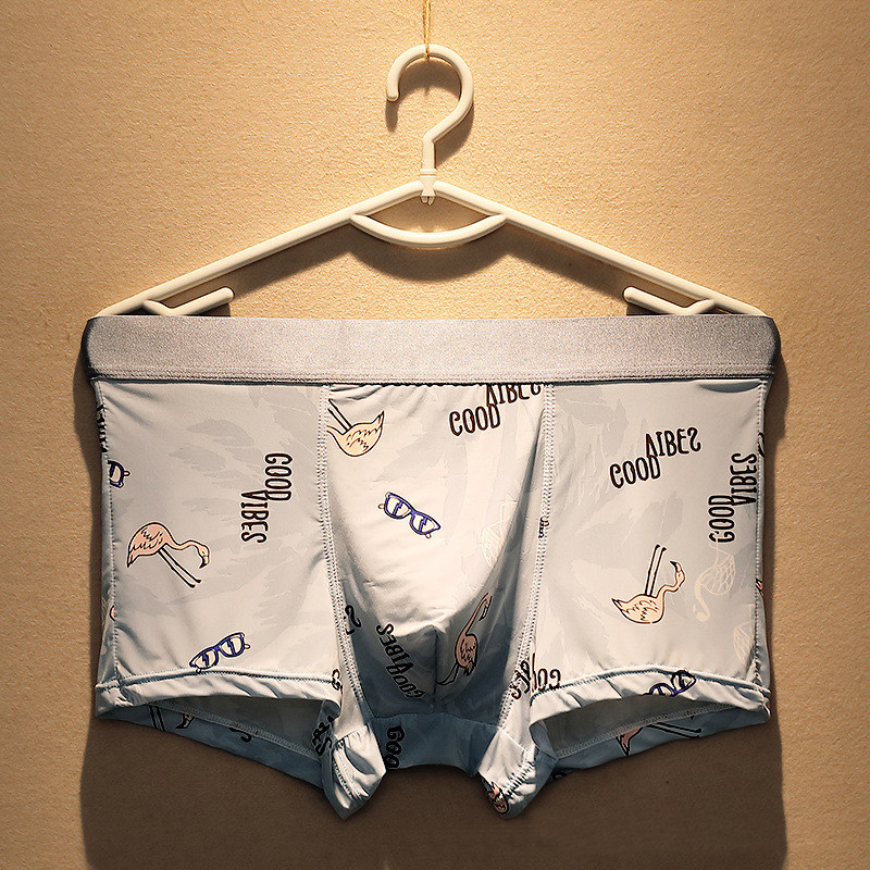 3 Ice Silk Men's Underwear Tide Men's Summer Cool Super Slim Breathable Four-corner Pants Sexy Printed U Convex Corner Shorts