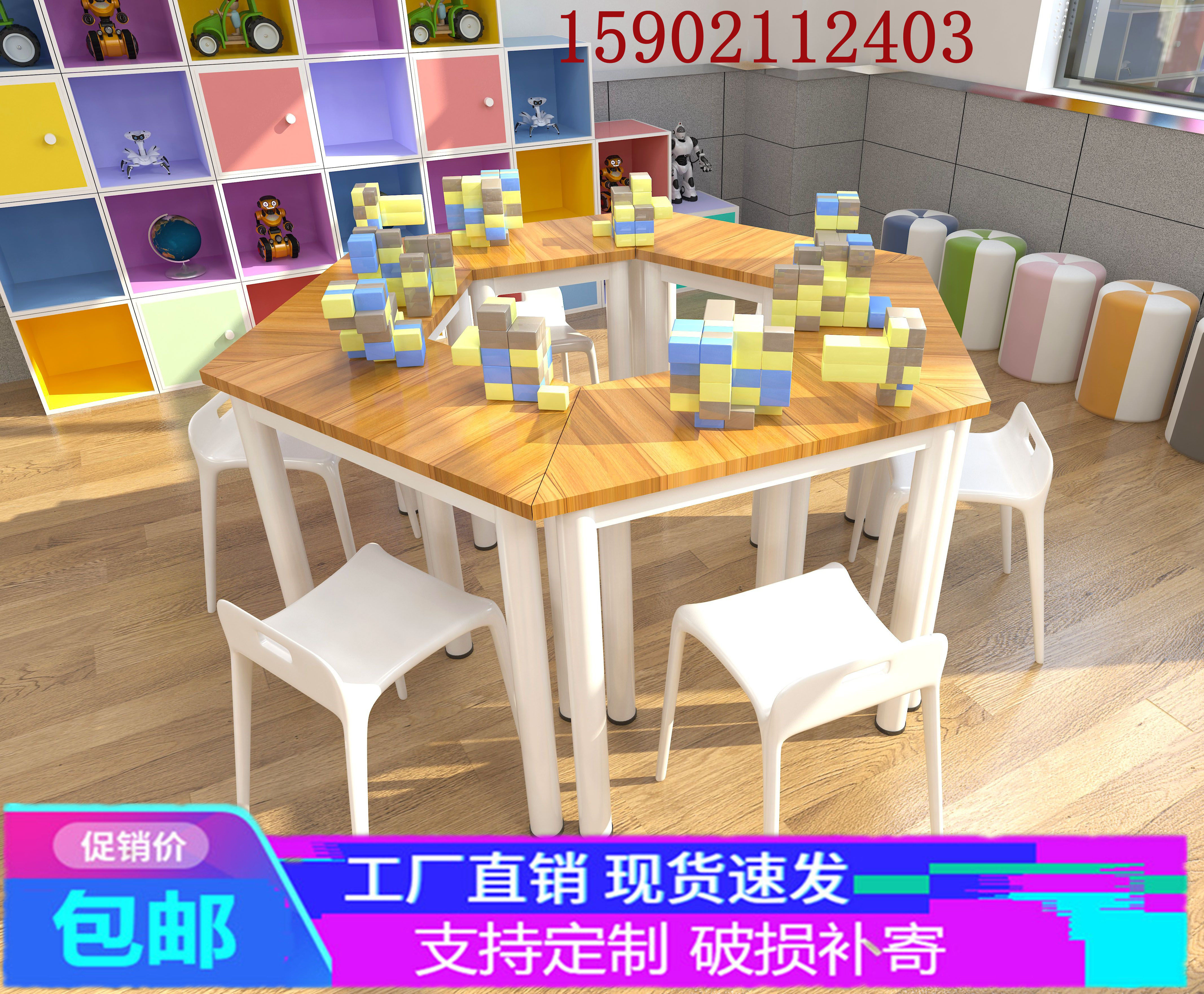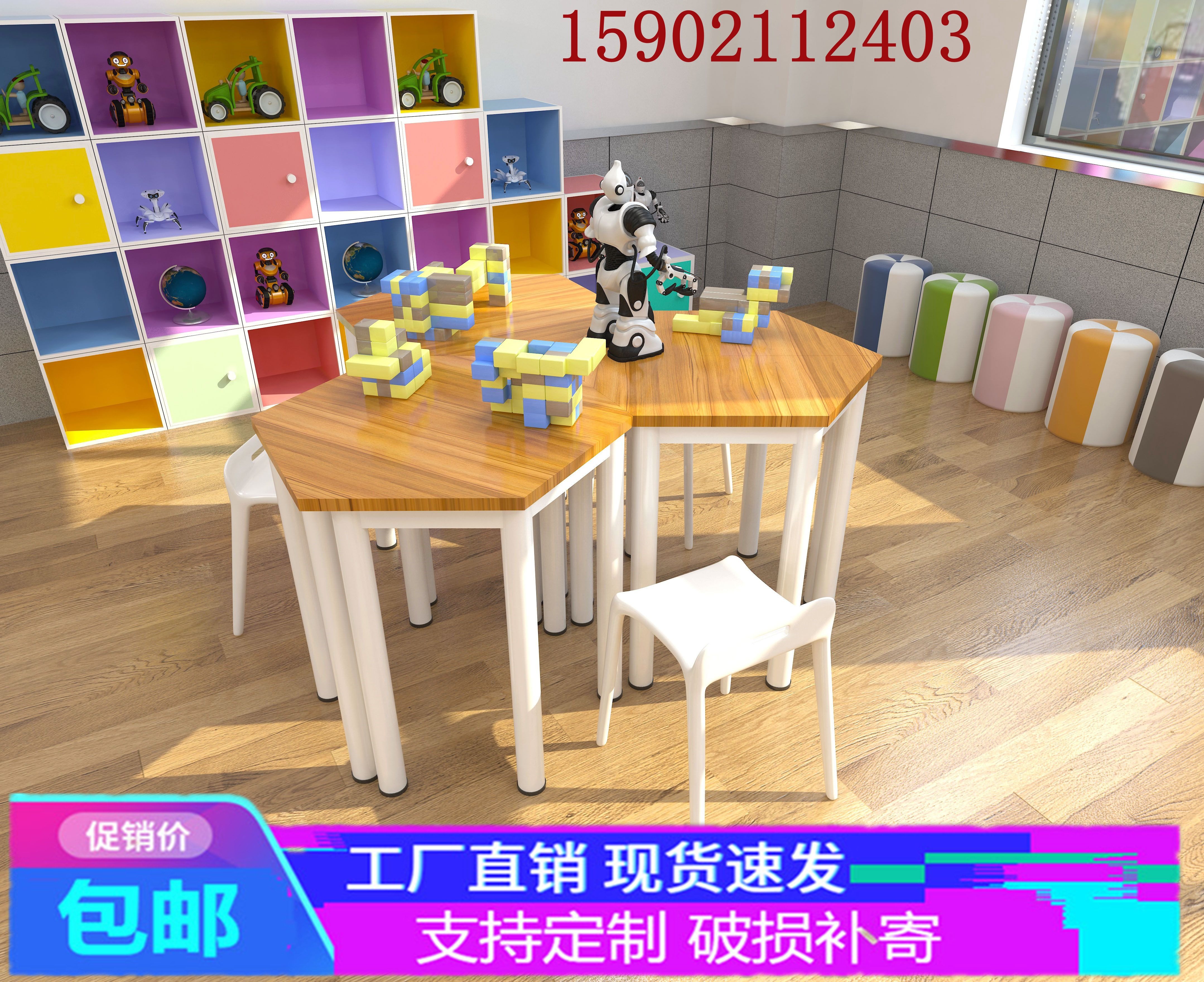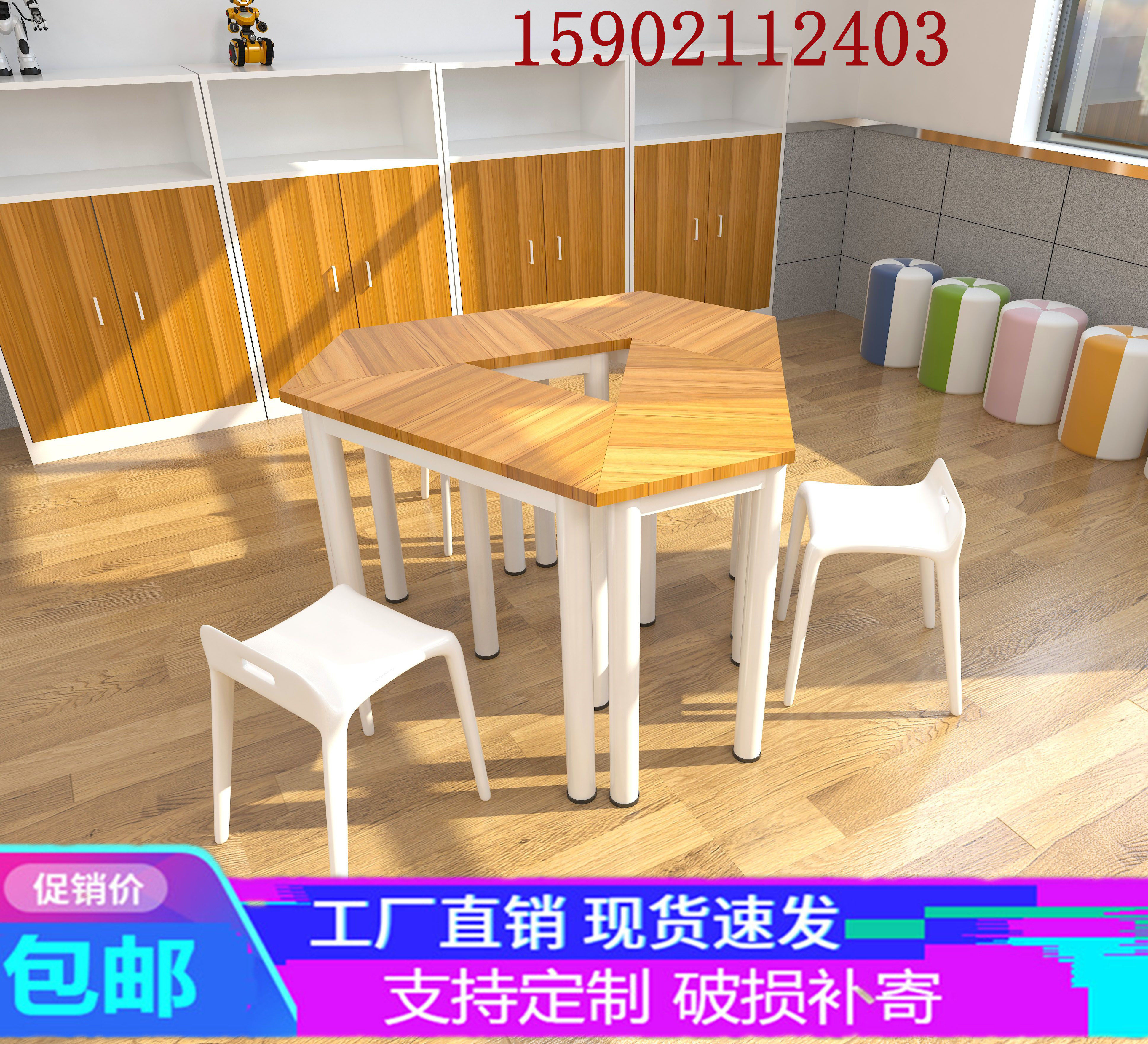 Hexagonal activity table and chair combination kindergarten library reading table group tutoring training table and chair special-shaped splicing table
