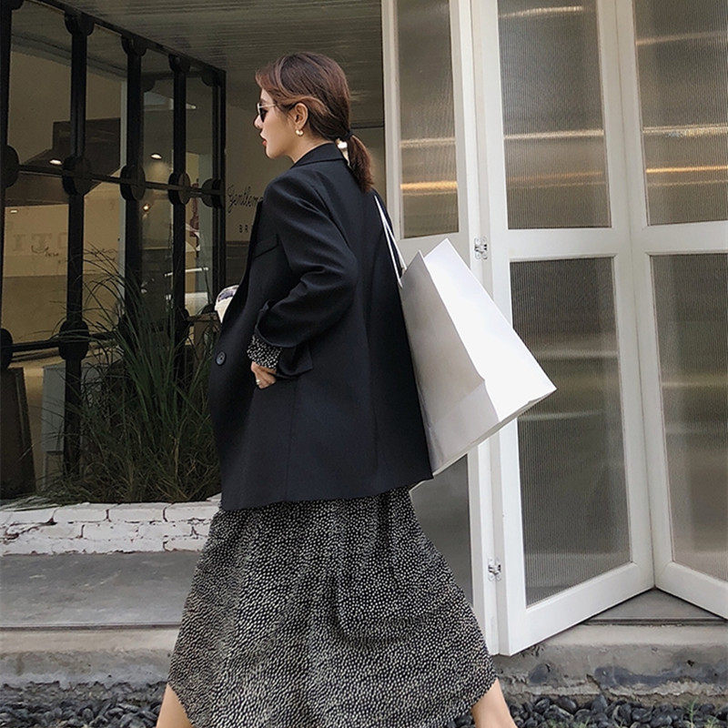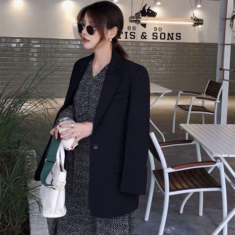 Small suit jacket female Korean version loose black professional casual all-match thin one button British style suit top