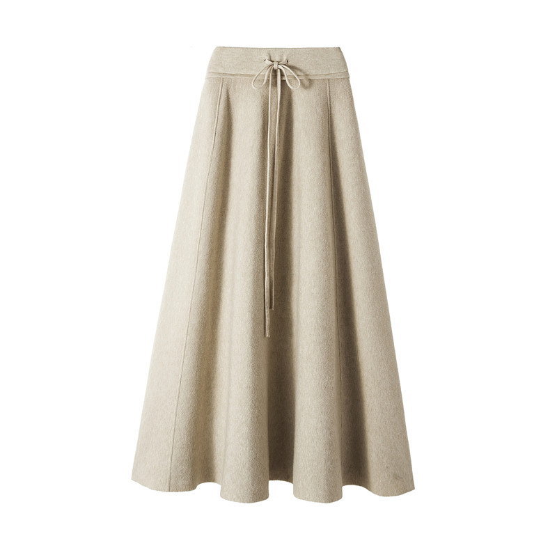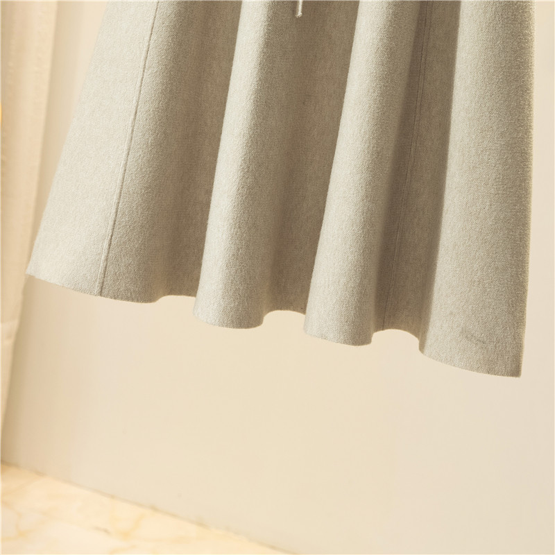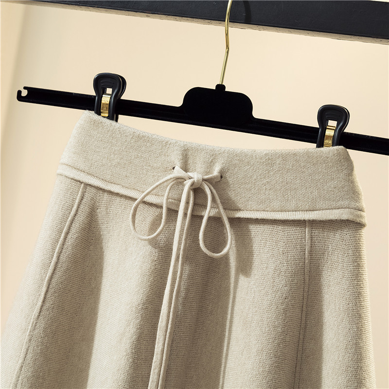 Knitted skirt, Korean version, high waist, A-line, autumn and winter wool, medium and long skirt, matching, pleated and belted